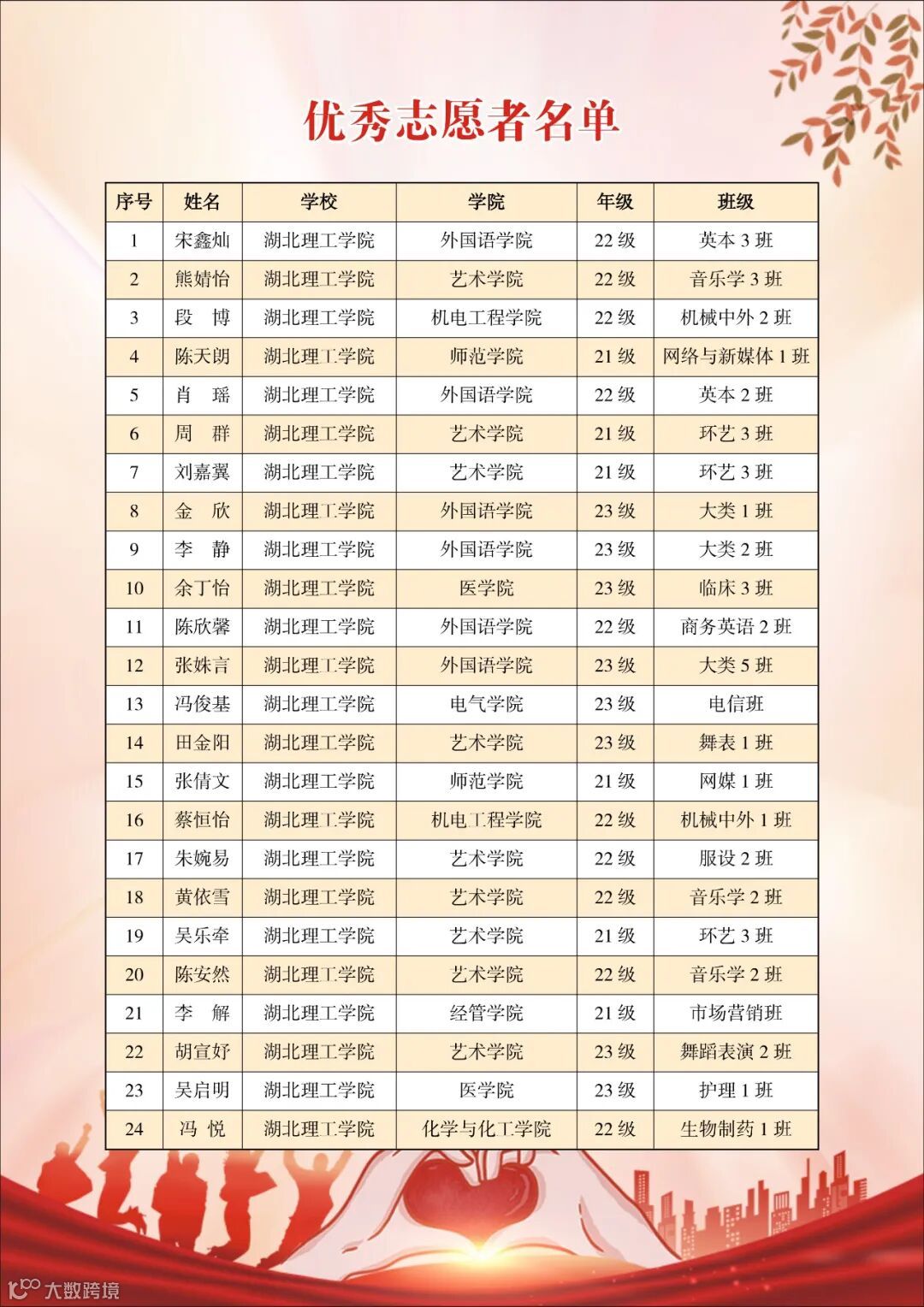 1、自愿参加2023年黄石磁湖国际半程马拉松志愿服务,身体健康,积极向上,能吃苦;