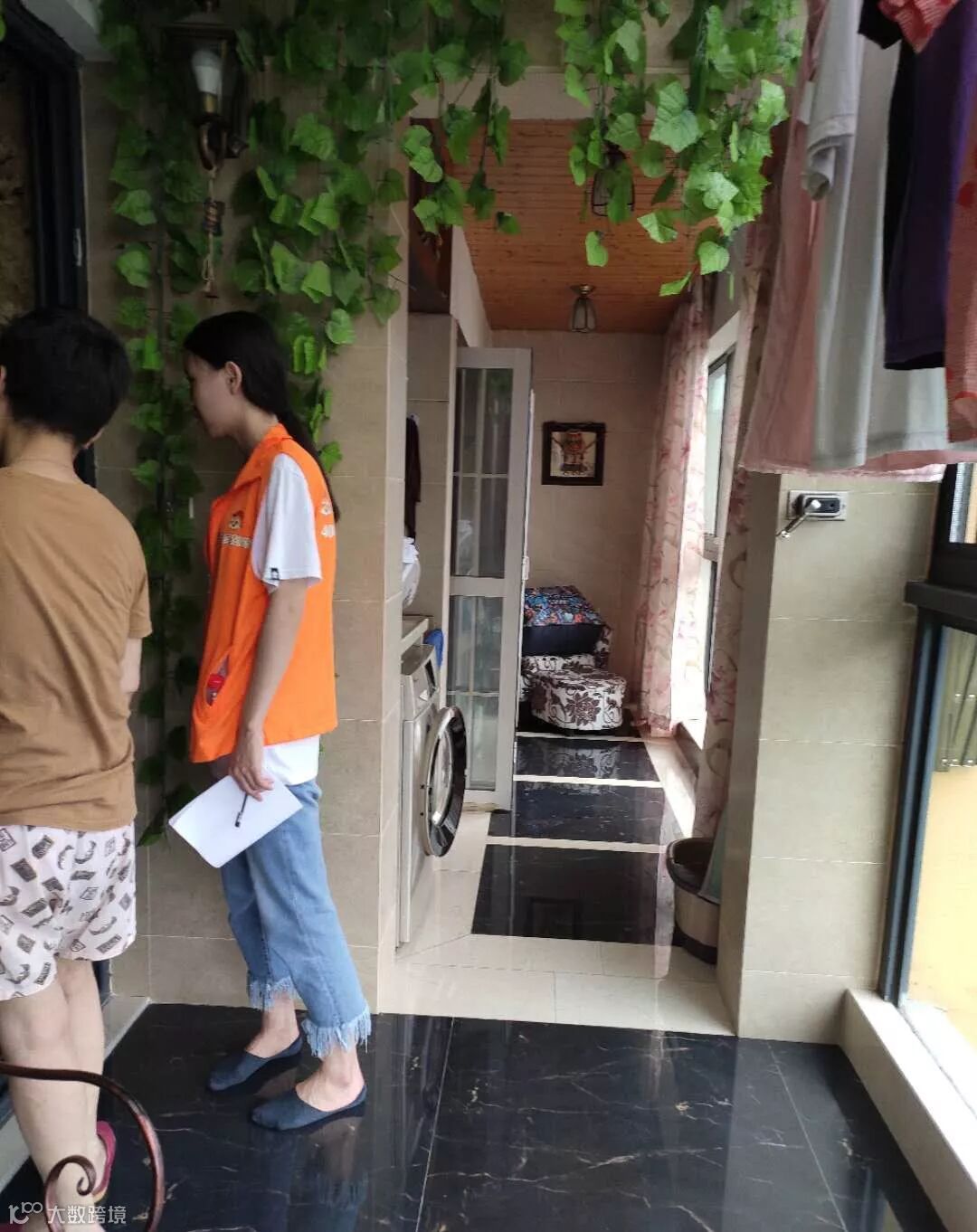 洗晾衣、储物、壁画、绿藤与休闲椅相映成趣