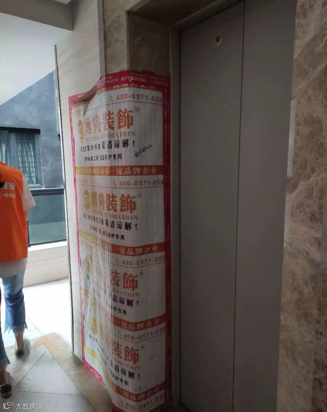 就被墙面和电梯拐角的施工保护眼前一亮
