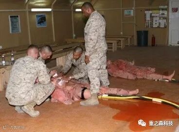 美军是世界上对外干涉最多的国家,同时国内又是世界上最发达安定的国家之一,因此美军从越战开始就面临最严重的官兵战场心理冲击问题。因此美军除了琢磨怎么利用一切高技术手段和敌人拉开差距,还大规模开展实战化训练,其中最重要的就是重视战场救护和心理冲击的训练。应该说,美军历来就是打人的,但是在实战化训练中,美军却非常重视“如果美军挨打怎么办”的训练。在这一背景下,美军在近些年开始大量应用MOULAGE技术,来尽可能逼真模仿战场发生的伤亡场景。