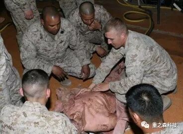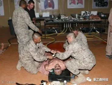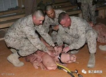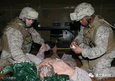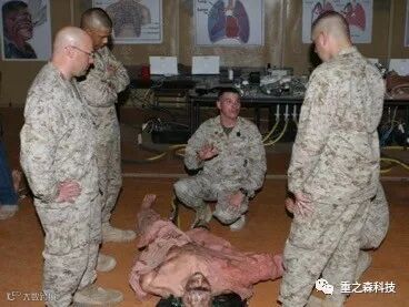 近年来,美国军队越来越多的用模拟人来培训医护兵和普通战士的战场急救技能。