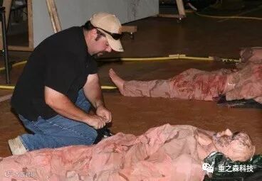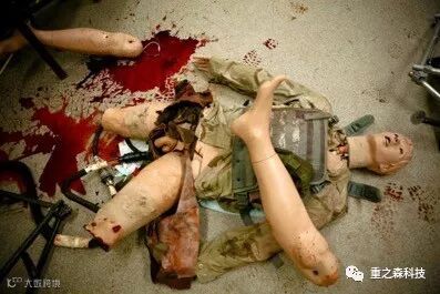 一是(MOULAGE)仿真人体模型技术。所谓的MOULAGE技术,实际的历史可以追溯到16世纪,当时欧洲早期的科学家为了搞清楚人体的构造,开始制作逼真的人体模型。可能很多人对高中生物课中展示人体肌肉内脏的人体模型还有印象,实际这就是一种初级的MOULAGE模型。MOULAGE技术在早期是医学专家来研究人体。随着各种人体扫描技术以及解剖学的进步,MOULAGE技术开始逐渐退出医学研究领域而逐渐应用于蜡像制作等方面。在电影诞生后,MOULAGE技术开始与各种化妆技术结合,创造逼真电影魔术。在今天,高级的战伤救治仿真训练模拟人不仅有和真人相仿的身高与体重,内部结构也非常逼真:它的手腕、颈部和腹股沟等处有人工脉搏,机械肺可以喘息、起伏,模拟肺啰音,四肢伤口可以流出血液,此外还可以模拟战伤骨折的症状。这些逼真的假人造价不菲,每个成本约4万美元,但凭借着先进的仿真模拟系统,美军的战伤救护训练成效也是非常明显的。