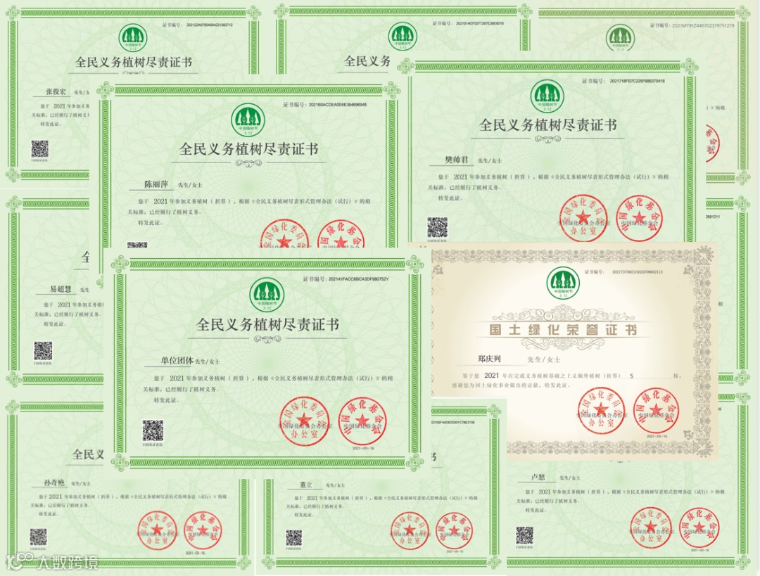 国土绿化荣誉证书