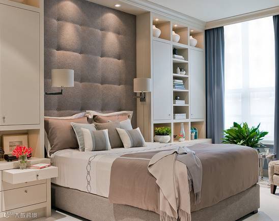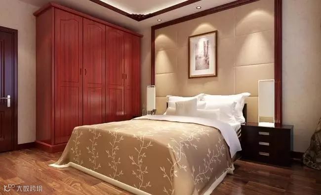 衣柜的选择应配合卧室整体风格,白色衣柜是最常见的款式,可做成置顶衣柜,或者与床头做成一体式收纳柜。中式风格多采用红木衣柜,小户型则设计成嵌入式推拉衣柜