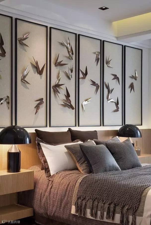 用质感十足的软包呈现低调典雅的风格,原木色背景墙简单却富有层次感;装饰画体现主人的生活品味……有这么多选择,快撤掉床头的婚纱照吧,背景墙才是卧室装修的点睛之笔。
