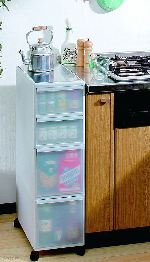 这样一个半透明的活动抽屉柜里