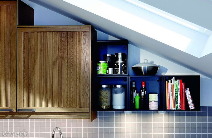 沿屋顶斜面设计一个层层摞放的储物格