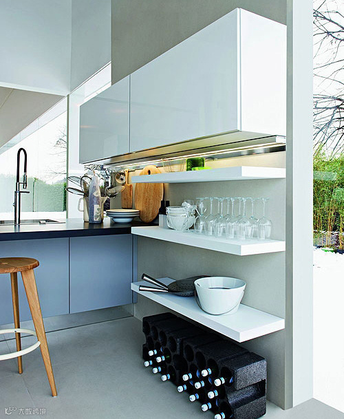 用开放式层架作为吊柜的下部联系