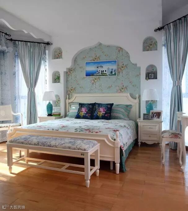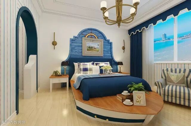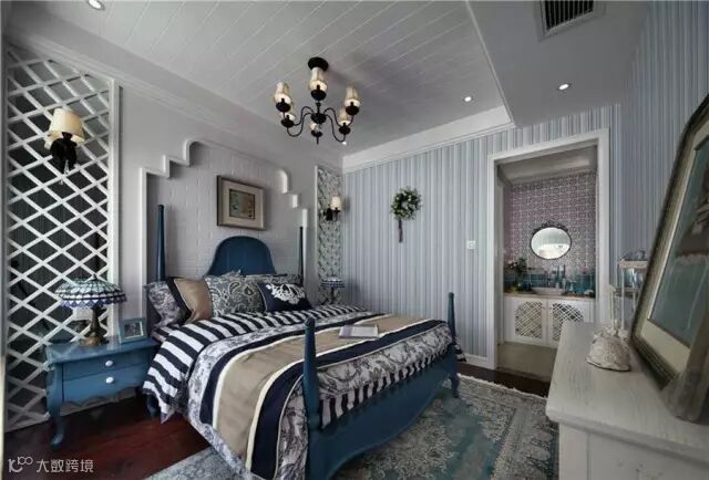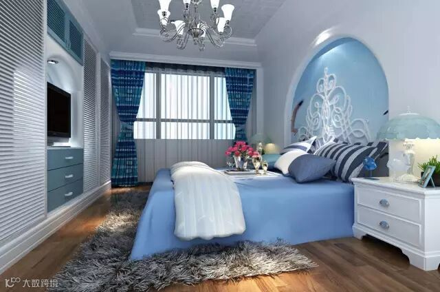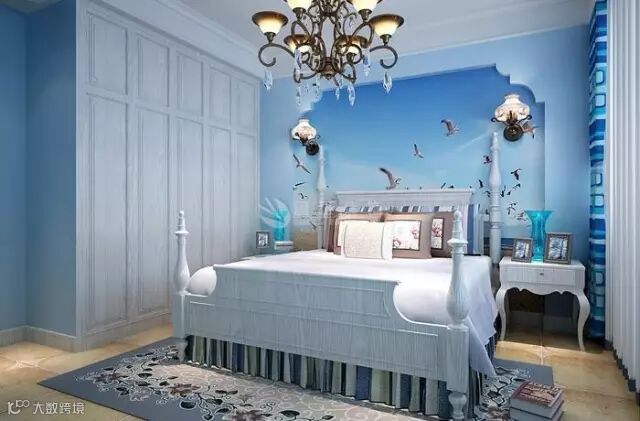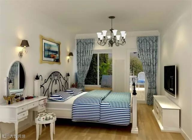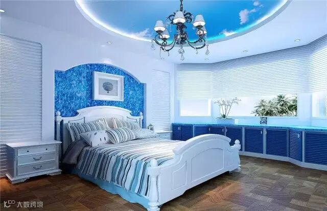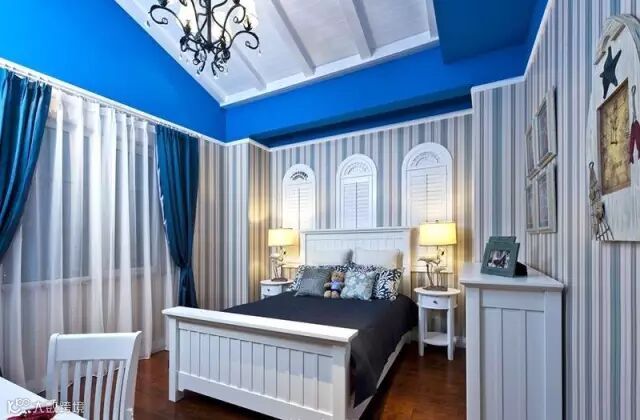 地中海风格的家居给人极具亲和力的田园风情,在这里有沙滩的白、海和天的蓝、沙漠和岩石的土黄与红褐,让人体验自由、自然、浪漫和休闲。炎炎夏日,在地中海风格的卧室中睡一觉,焦躁的心应该会获得一分宁静与清凉。