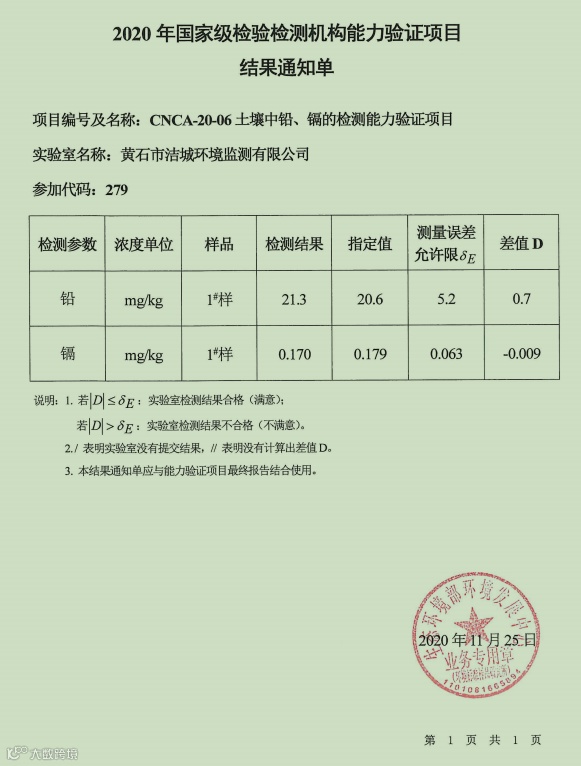 近日,国家市场监管总局公布2020年国家级检验检测机构能力验证结果名单,市城发检测公司洁城实验室土壤中铅、镉的检测项目顺利通过国家级检验检测机构能力验证,验证结果为“满意”。