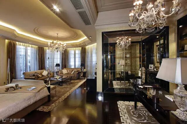 本案是400多平的大平层,采用欧式风格设计,业主奋斗了一生,就想要奢华的生活来犒劳自己,所以想把房子装得奢华大气。由于房子面积足够大,设计欧式风格也比较大气,采用一点石材来作为点缀的材料,罗马柱用来作为点睛之物恰到好处!