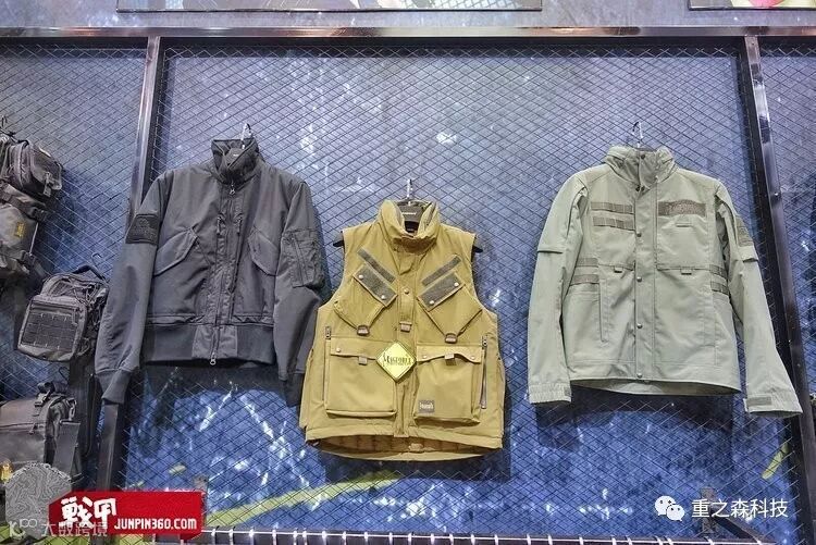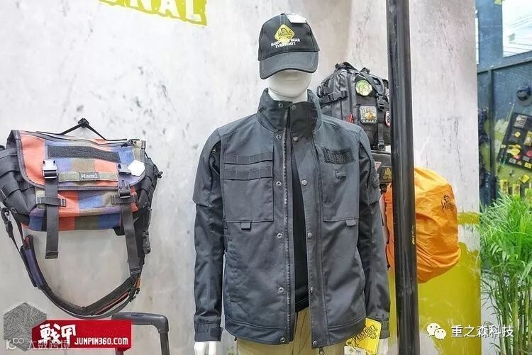 不像去年展会带来了一堆有特色的样衣,今年台马只展出了三款战术风格服装,官方宣传是机车服。分别是类似45p的夹克、作战服马甲和带有Molle条夹克的三款服装,具体特点未知,只是介绍使用了500D面料。不知道穿上500D面料的外套,再背上‘文能磨衣、武能磨刀’的台马包,会发生什么样有意思的化学反应呢?说不定未来还会有500D注胶面料的防水冲锋衣上市。