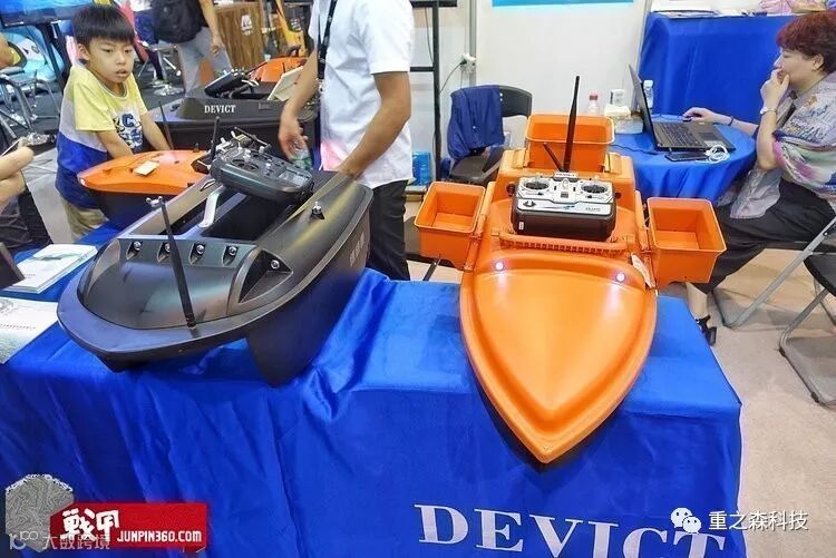 除了吃穿用度,还有渔猎用的产品。比如下图展出的德维康打窝船系列产品。