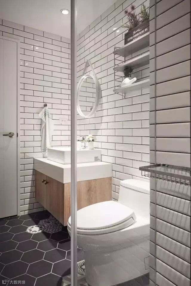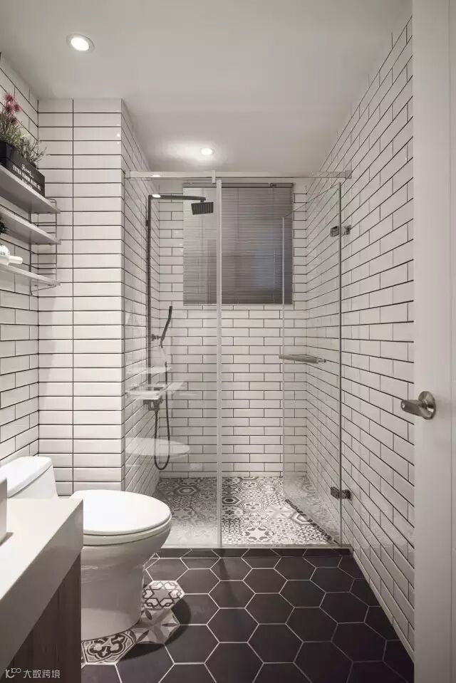 白色优雅小方砖搭配黑色六边形地砖