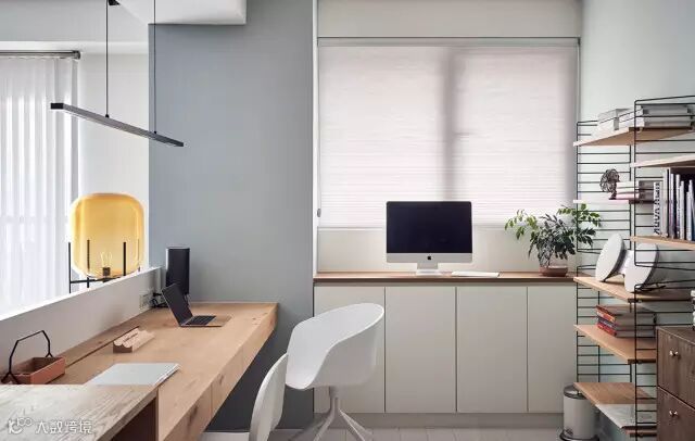 利用半高的书桌划分出书房区域
