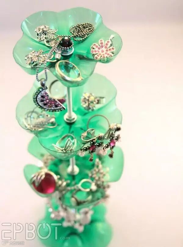 ▼将瓶尾剪得浅一点就是首饰收纳盒啦,放耳环、手链、戒指都非常方便~