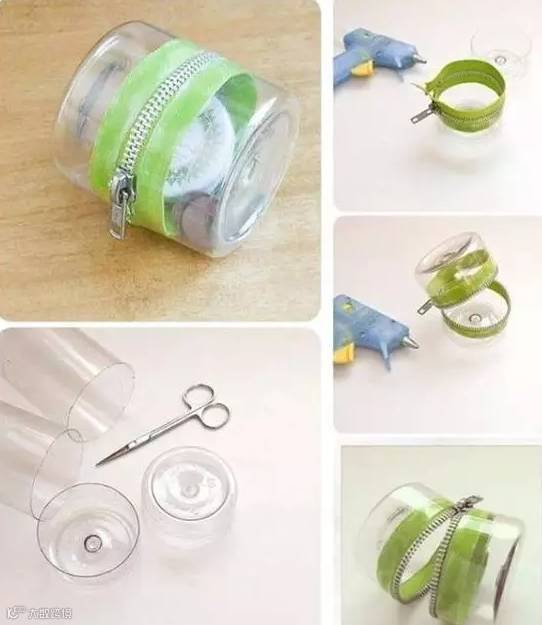 ▼剪下两个塑料瓶的底部,用拉链连接上,就变成了一个零钱包,实用又好看~
