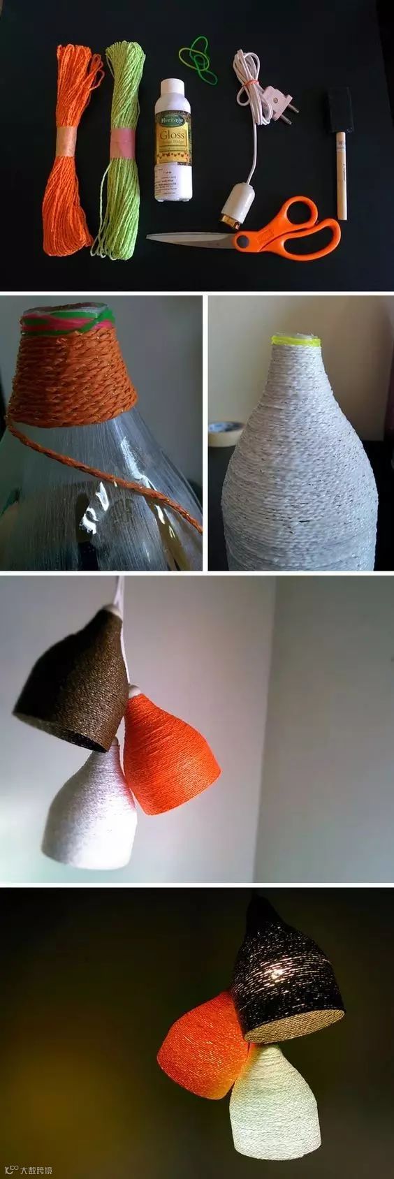▼想要灯具更有质感,还可以在塑料灯罩外面缠一圈麻绳,做好后和在家居店里买的一样~