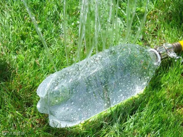 ▼给草地或者花园浇水时,可以在泵头上套一个钻了孔的塑料瓶,立马变成了高级的喷水器~
