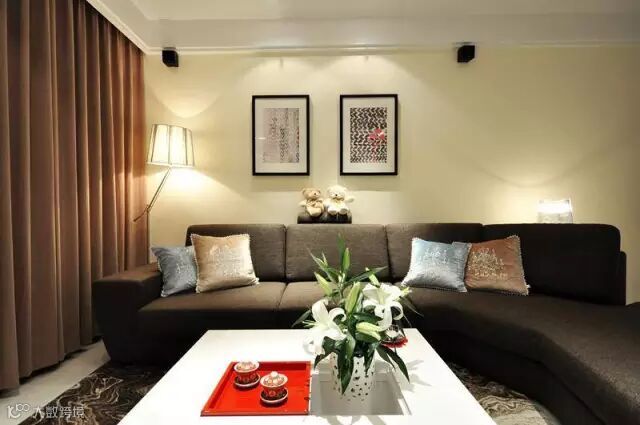 深色沙发、浅色墙纸搭配在一起有种说不出的温馨感。