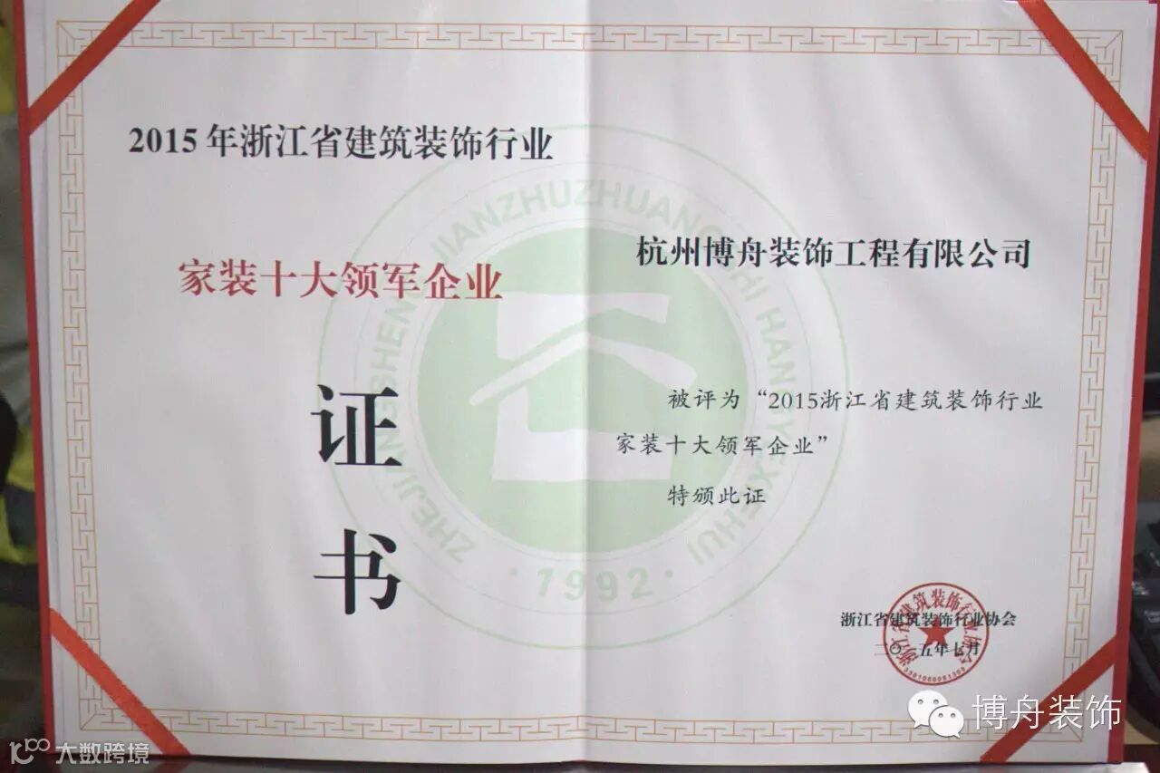 【惊喜二】——博舟装饰荣获浙江省家装十大领军企业