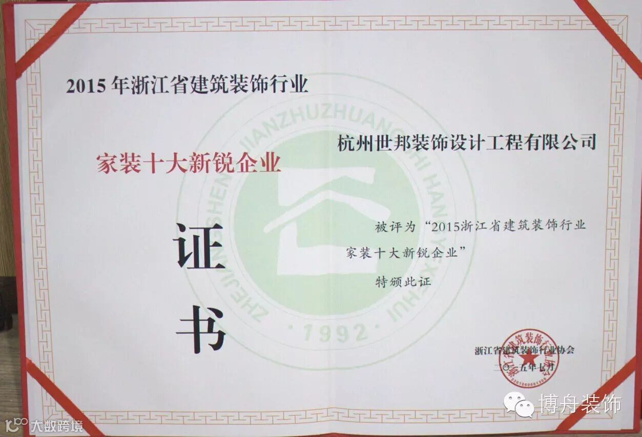【惊喜三】——世邦装饰荣获浙江省家装十大新锐企业