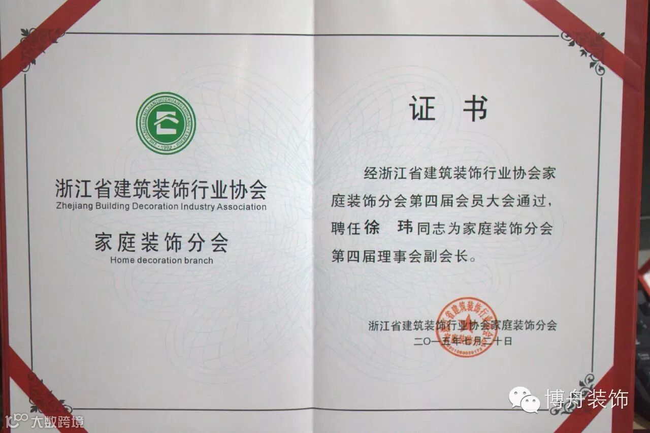 这是浙江博舟装饰集团大喜的日子,恭祝博舟装饰集团成为浙江省建筑装饰行业协会家装分会常务理事副会长单位,杭州博舟装饰工程有限公司被评为浙江省建筑装饰行业家装十大领军企业,杭州世邦装饰设计工程有限公司被评为浙江省建筑装饰行业家装十大新锐企业!同时博舟装饰成为《家庭装饰装修规范》参编单位!工程管理公司被省装协认证为首批施工能力认证企业。