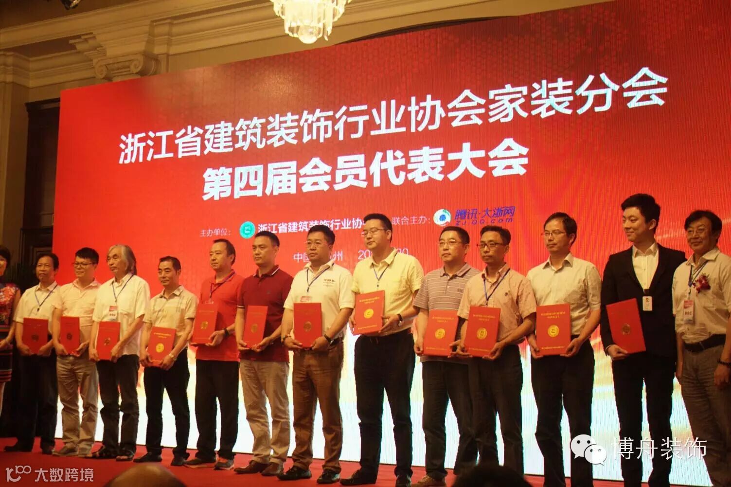 浙江省建筑装饰行业协会家庭装饰分会第四届会员大会暨首届家居产业大会于2015年7月20日在杭州歌德大酒店顺利召开。本次会议惊喜不断,博舟集团喜获大丰收。