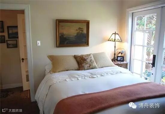 卧室里以欧式的简约舒适为主,柔软的床品给人一种豌豆公主的错觉,推开玻璃门窗与户外相连的开阔视野让卧室格外扩容。