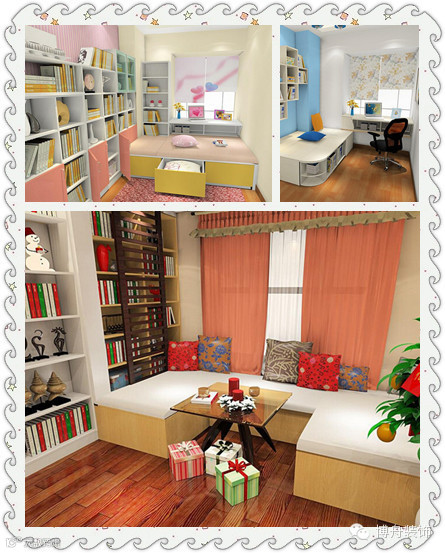 又或者在飘窗凹位处设计一个小型榻榻米连接的装饰柜。在午后或者周末,可以用来当做休闲、阅读区使用,美好而又惬意。