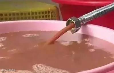 久未清洗的热水器究竟存在多少污垢?关闭三角阀门后拧开冷热水口的螺帽。一番拆卸过后热水器里残留的水流出来了。起初从热水器的阀门口流出的水还比较清澈。