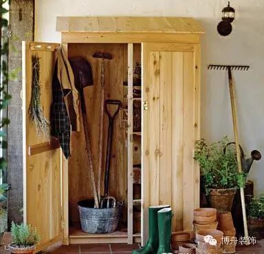 像图上这个小木屋,是由天然防腐的雪松做的,他能很好的让你的工具不会因为受潮湿的影响而生锈,而且木材自身还防止虫蛀,而且这样子一个收纳柜子只要一个周末就可以做好。