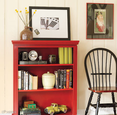 32.你不必把你的收藏品房子啊壁橱里,用开放的柜子来展示你得意的珍贵藏品,制作一个这样的书橱不需要花费很多钱:几张胶合板和一些便宜的装饰线条。这样你就能很好的制作一个适合你自己的展示柜来放置你的珍藏书本和最爱的珍玩。