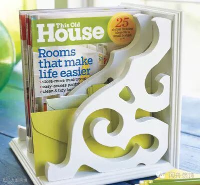 虽然塑料书架很便宜,我们也不要在一个书架上只放满一种杂志,而显得你的个人品味十分单一。制作一个能装下更多种类的杂志的书架是能让人们使用更加方便,这个模型有漂亮的隔板依附在简单的木质框架上,创建一个个独立的文件分类格。