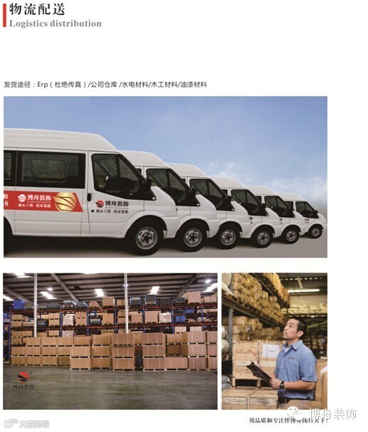 公司成立了专门的物流中心,所有的装饰用材全部从厂家批量进货,减少中间环节,杜绝假冒伪劣,实现品质与价格的最大性价比。所有物流中心销售的主材,如墙纸、瓷砖、地板等一律低于市场价。