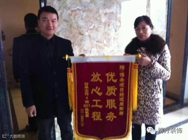 年末了,寒冷的冬季没有减弱我们的热情。12月是一个丰收月,月末博舟再次收获了一份支持与口碑,来自四季公馆4-801的陈女士送来一幅标有“优质服务,放心工程”字样的锦旗。