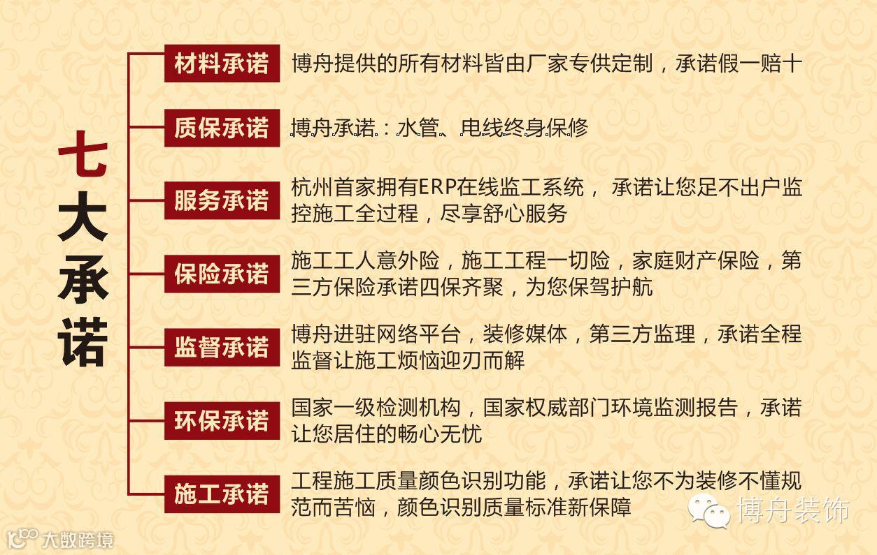 我们邀请了杭州金品质装修企业代表:博舟装饰在现场和你谈设计和施工方案,博舟装饰公司承诺:装修不合格,砸掉免费重装。