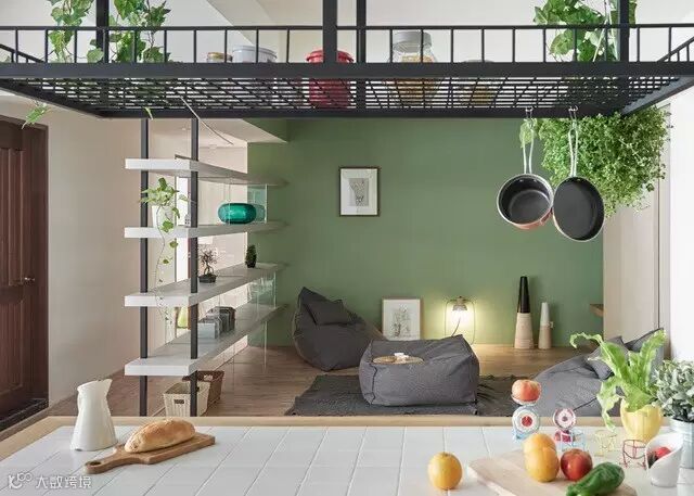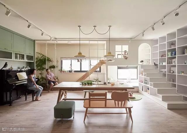 设计师利用竖向空间打造了小隔层和飘窗卡座