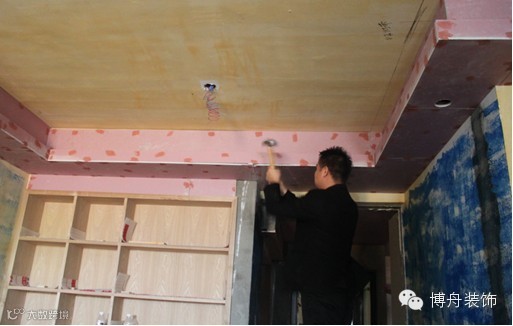 现场发现吊顶装斜,工程总监蔡鹏二话不说拿起质量锤就砸掉了