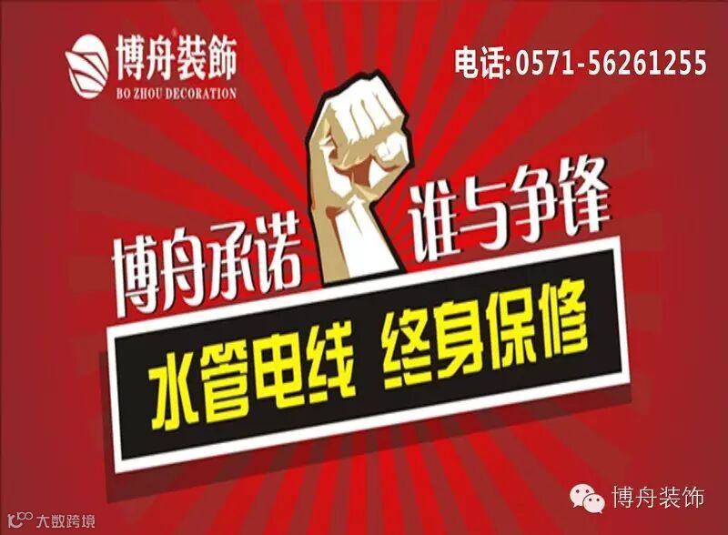 博舟装饰自成立以来就坚持以诚信打造透明工程,全力营造放心消费环境,用细节和质量来表现,用贴心服务来关怀,依靠客户的口碑来不断提升“博舟装饰”品牌的知名度和影响力。博舟装饰“装修不合格,砸掉免费重装”已经迎来第八季,并郑重承诺:“水管电线,终身保修”。
