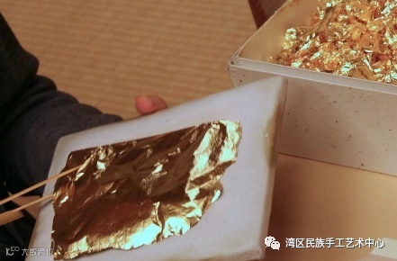 贴箔工艺是漆艺中的一种技艺,工匠们将金银熔化,制成箔片再制成各种花纹,最后将箔片贴于漆器表面,形成纹样。体验课中,民众可以先在黑色小板上画出动植物造型,然后在上面描漆贴箔,彩色碎箔变化丰富,效果极佳。