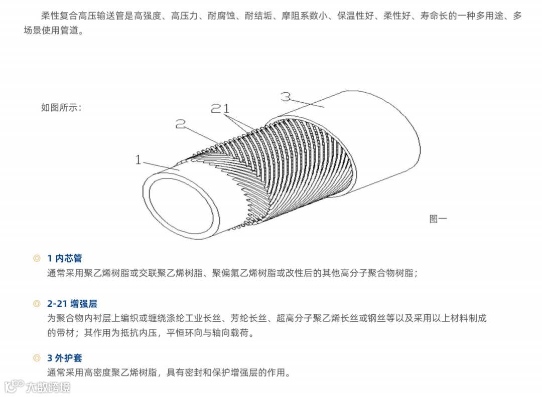 中间层(增强层):由涤纶、芳纶、玻璃纤维或钢丝等材料制成的带材,螺旋缠绕形成网状骨架。