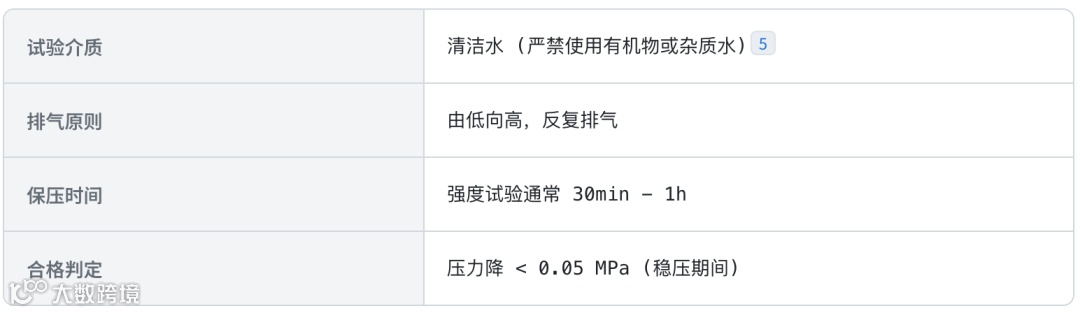 合格标准:在保压期间,压力下降值不应超过规定范围(一般为0.05 MPa或0.02 MPa,视具体工程标准而定)。