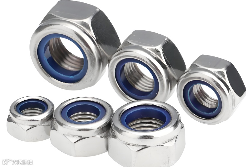4、内嵌尼龙自锁螺母:这种螺母在内部嵌入了尼龙垫圈或嵌塑件,利用尼龙材料的弹性和摩擦力来提供防松效果。当螺母拧紧后,尼龙垫圈或嵌塑件会产生额外的摩擦力,防止螺母松动。