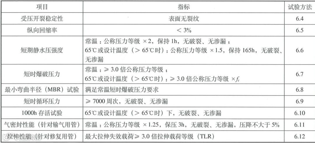 短期静水压强度:在常温下公称压力等级×2,或65℃/设计温度下公称压力等级×1.5,保持165小时无破裂、无渗漏。