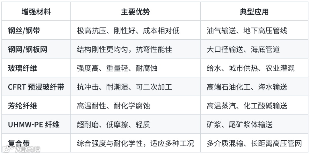钢网/钢板网:以网格或板块形式嵌入,适用于需要更高刚性的管道。