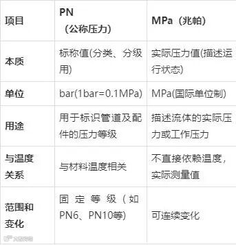 PN为公称压力,标称值,单位bar,用于管道分级;MPa为实际压力单位,描述运行状态。PN与MPa相互联系,选型时需考虑实际压力、温度和安全系数。如PN1.6MPa写法需结合具体标准判断。