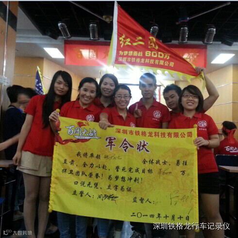 此次百团大战为期45天,分红蓝两队,共14家公司的团队200多销售精英参加。作为红二团的深圳铁格龙科技有限公司,赢了对手蓝二队。最让铁格龙科技公司欣喜的是,本公司名媛Abby(中文名何满荣)——以业绩419万元的阿里国际网上销售业绩,465.59%的完成率赢得了百团大战中的个人冠军,公司美女Kinsey(中文名陈荣蕾),也以100多万元的不凡业绩和167.86%的完成率进入了个人业绩排名的前十。这是她们和她们的铁格龙团队,辛苦努力奋斗45个昼夜赢得的桂冠,祝贺她们,希望她们继往开来,而今迈步从头越。
