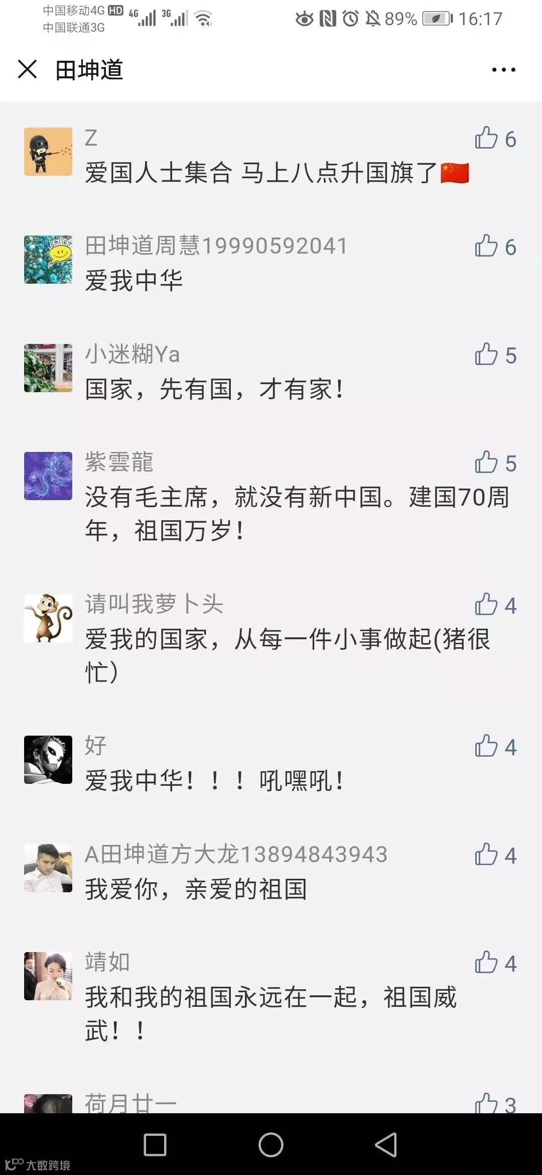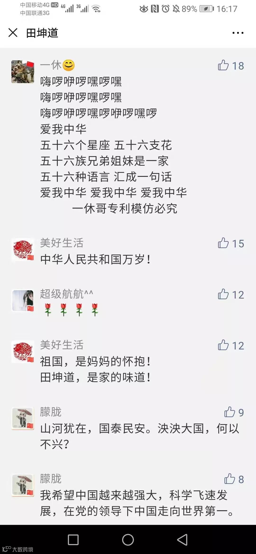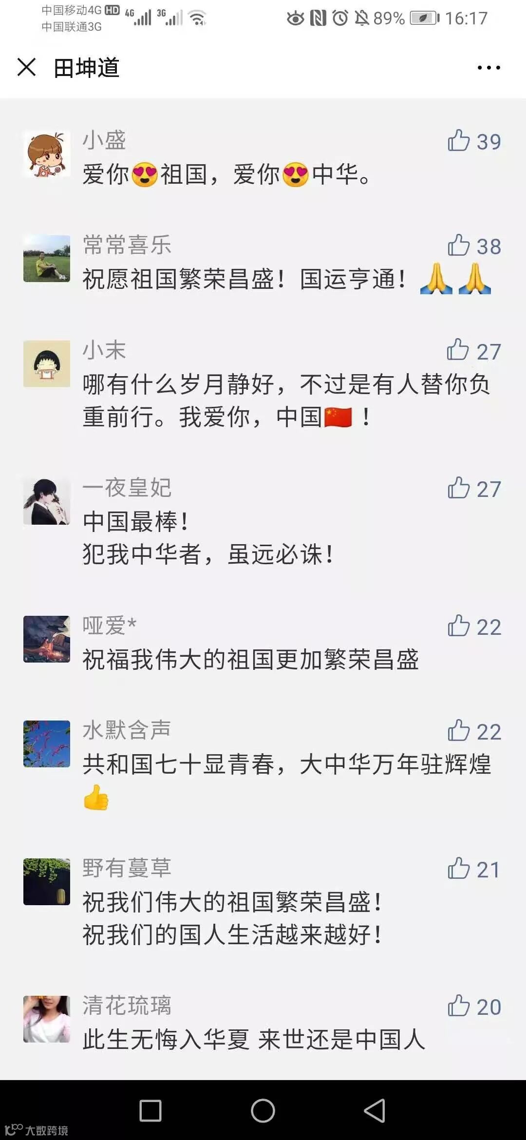 看到大家的留言,最让人感动的是,大家对祖国的热爱。