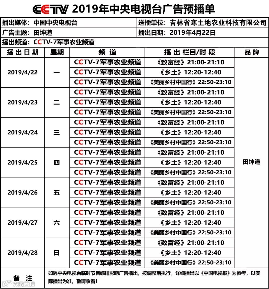 田坤道昨天小编预报了广告的时间